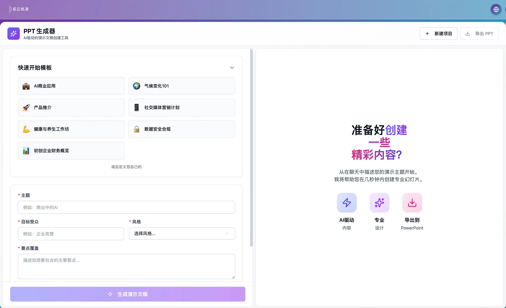 智能生成专业美观的演示文稿,轻松实现内容到设计的一键转换