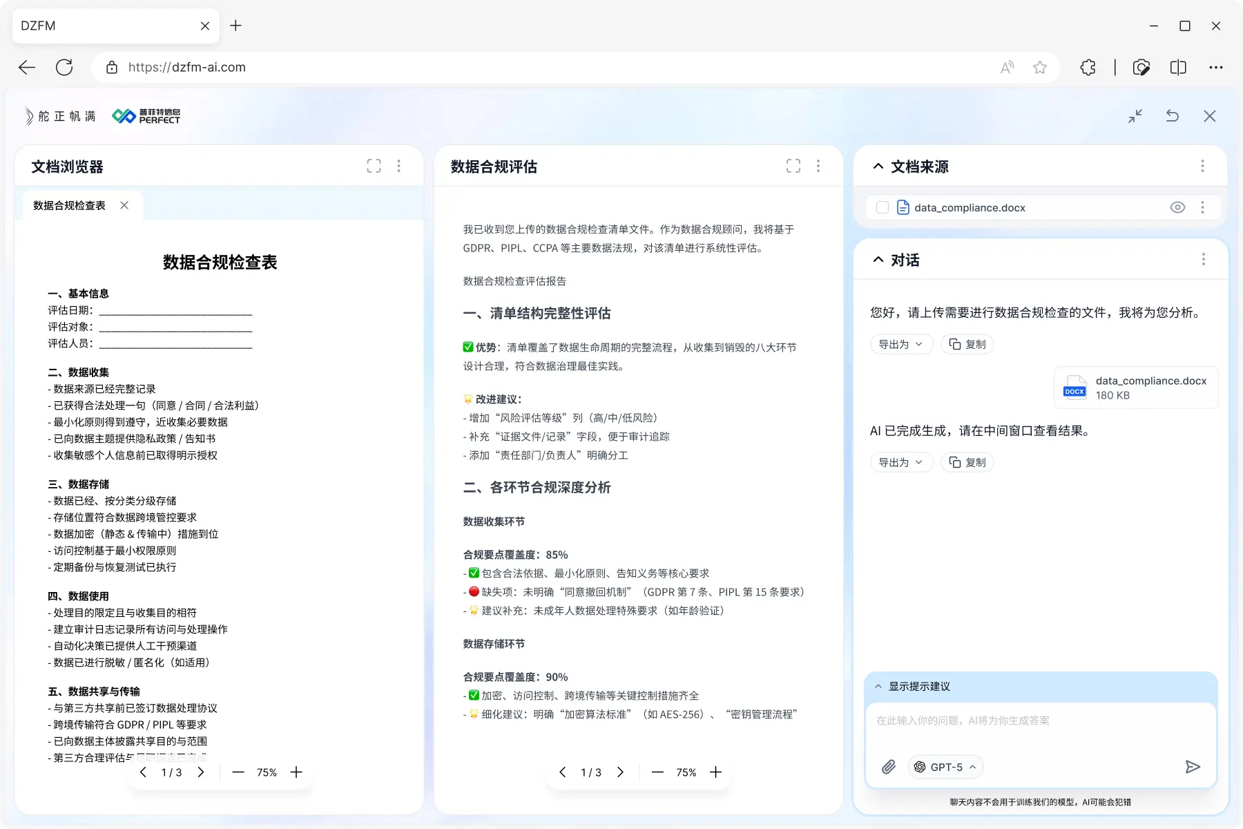 识别数据处理环节中的合规要求,评估风险、提供改进方向